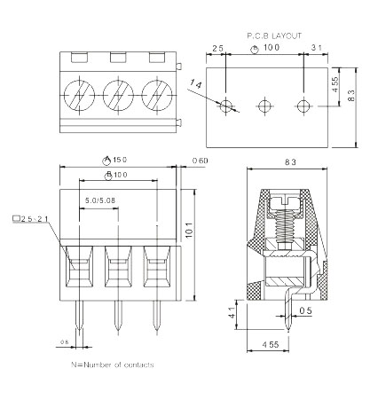 间距:5.00/5.08mm